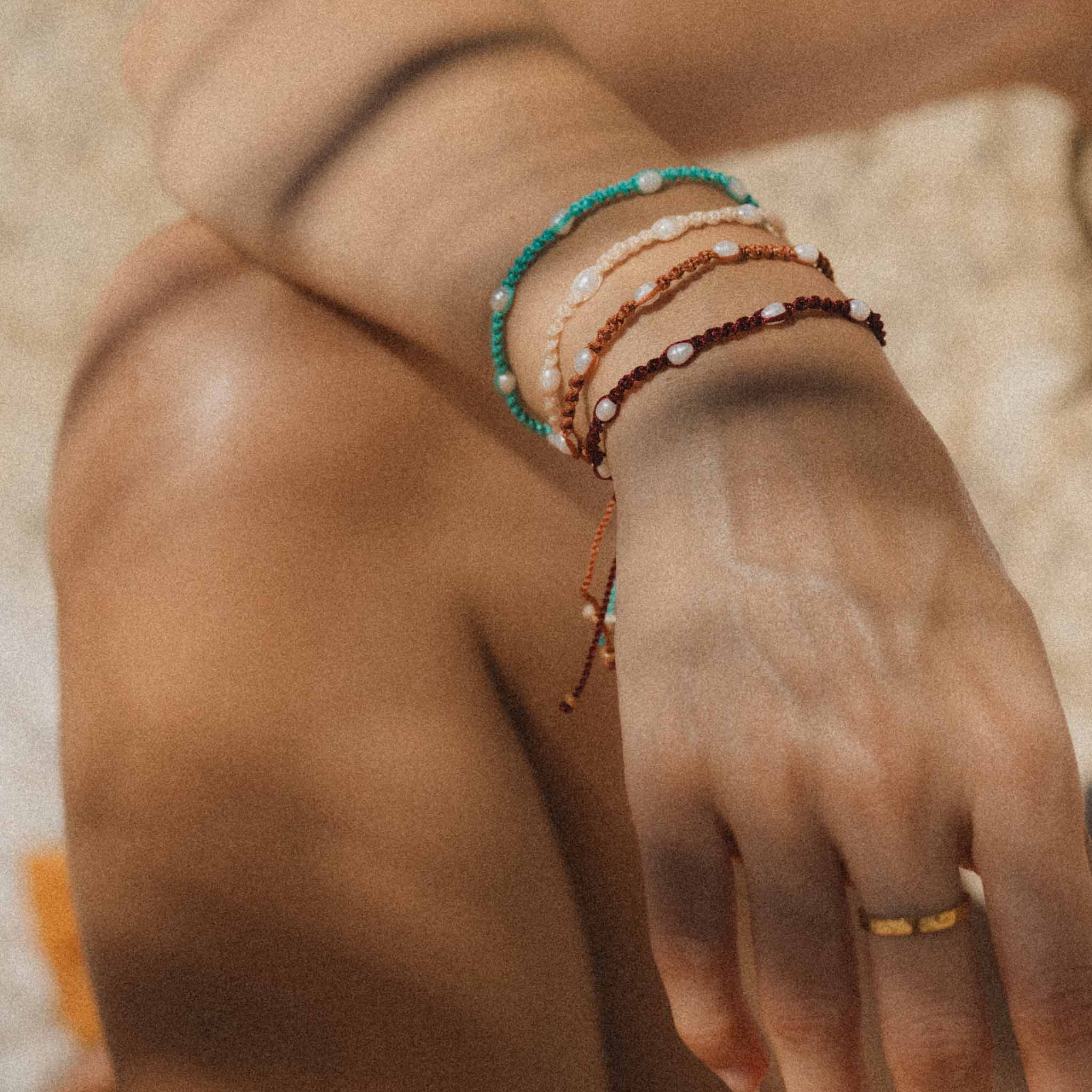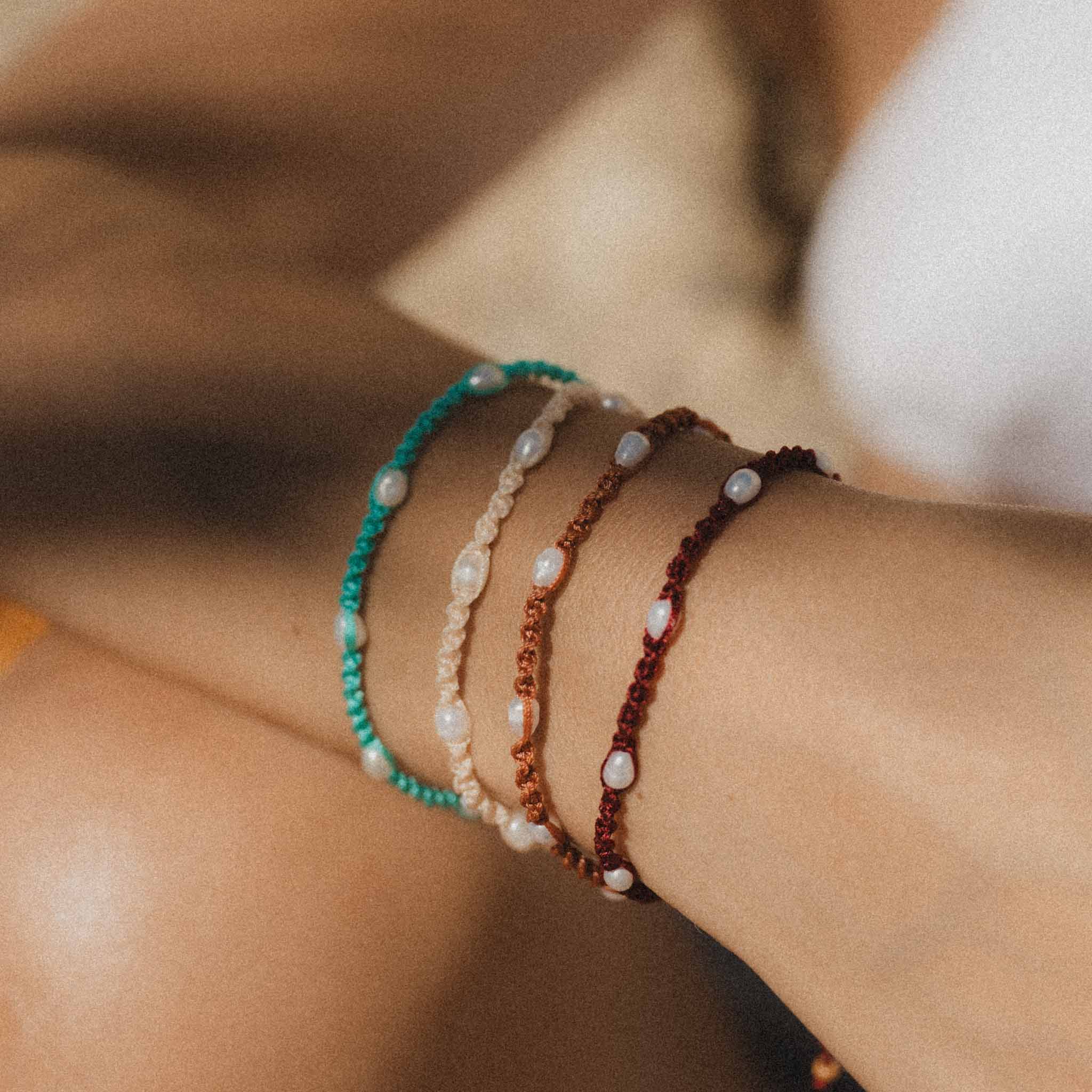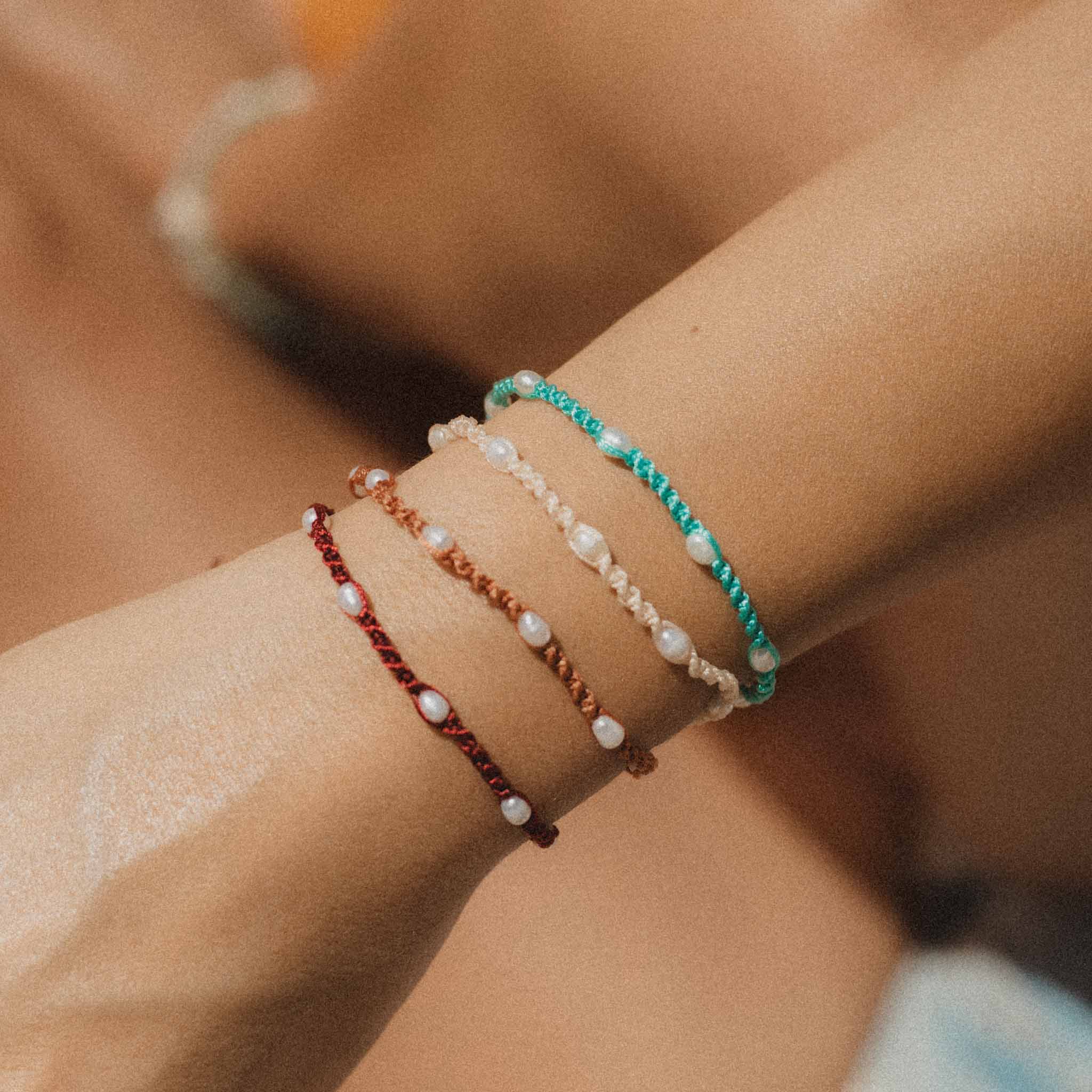 The Berseri Knotted Pearl Bracelet features real pearls knotted along a durable, hand-finished cord. Berseri means radiant in Indonesian, reflecting the soft glow of the pearls in the sunshine. Perfect for effortless styling, whether you wear it alone or stacked with your other Pineapple Island favourites.