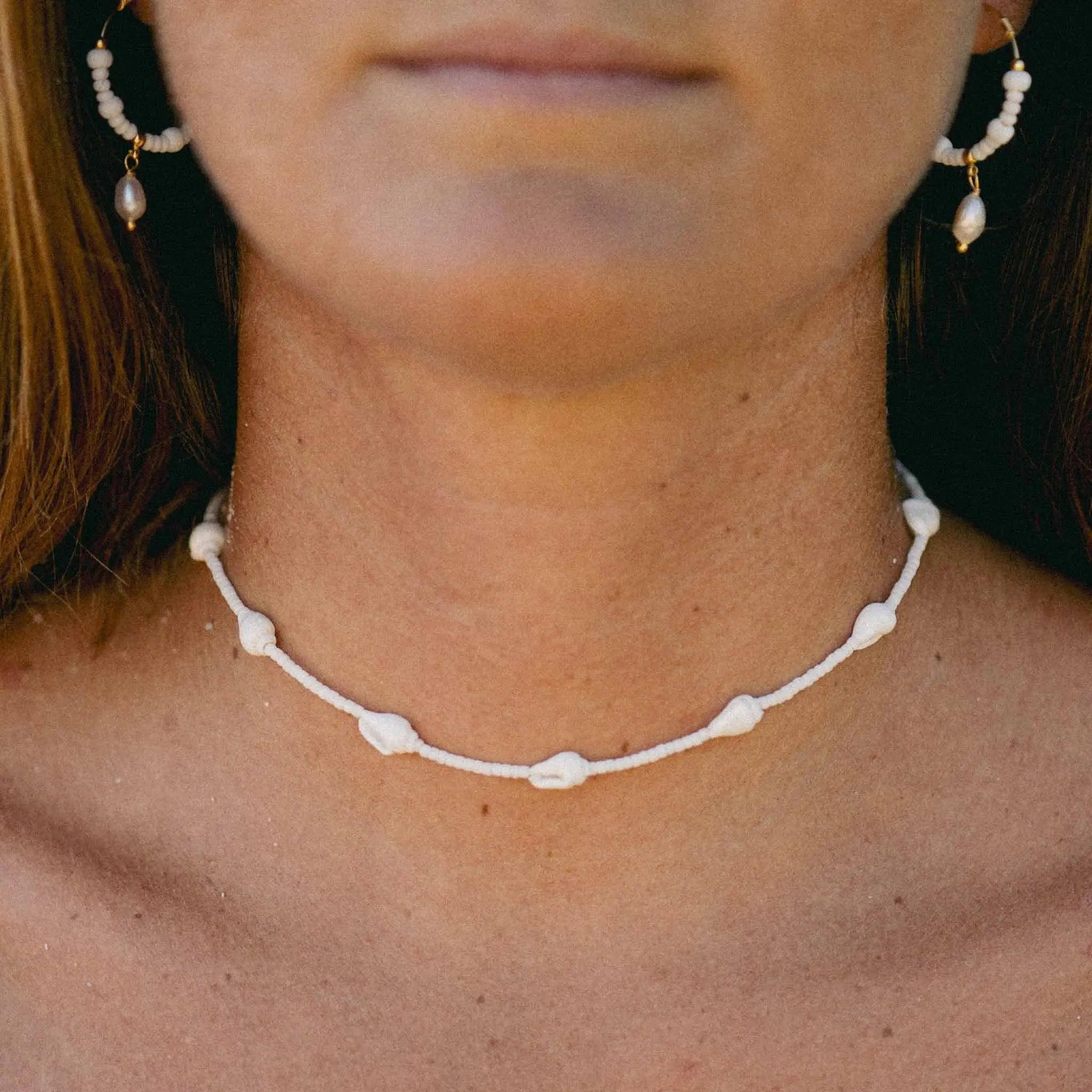 Small natural shells spaced along a fine white cord. The kind of surfer necklace you find yourself reaching for every morning! Designed by Giada Legati and made by hand in Java by our long-term artisan partners.