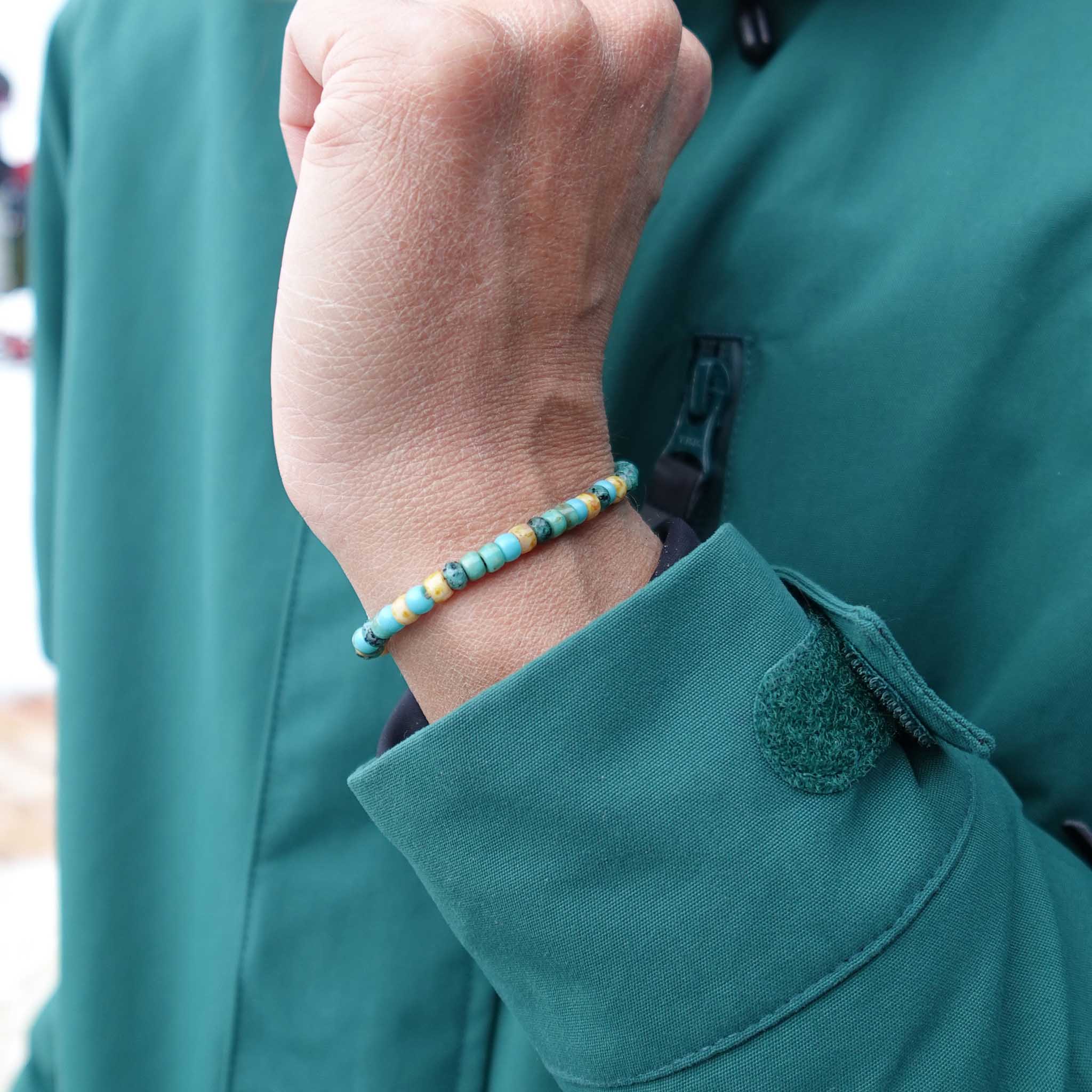 Flowing from the glaciers of Mont Blanc through the heart of Chamonix, the Arve River inspires this stone bracelet with its mix of turquoise and earthy golden hues. Hand-strung with natural stones that echo rushing alpine waters and sunlit riverbanks, the Arve River Stone Bracelet brings a touch of wild mountain energy to your everyday adventures. Adjustable and versatile, it’s perfect for travellers and winter wanderers alike.