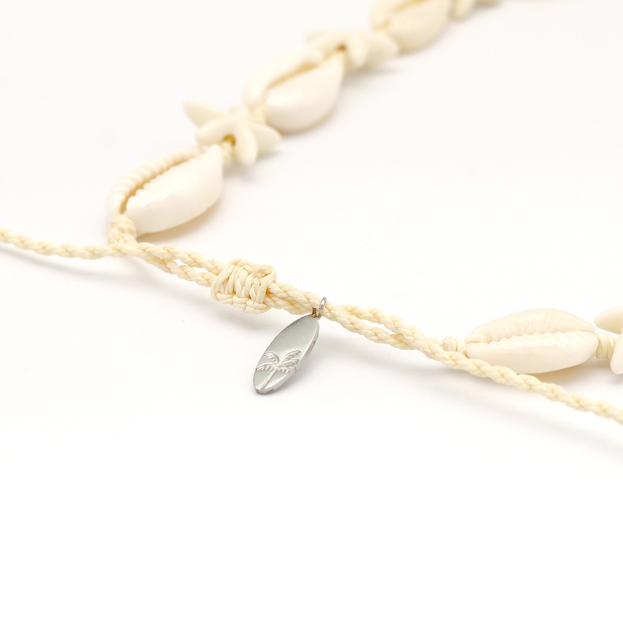• Made with real cowrie shells and ceramic starfish beads on wax polyester cord.